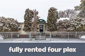 INVESTOR ALERT / BLOCKS AWAY FROM FUTURE TRAIN STATION / OVERSIZED CORNER LOT / TRIPLEX / INNER CITY NW LOCATION / CASH FLOWING PROPERTY. This property has unbelievable potential! Built as a legal TRIPLEX (with 3 electric meters in common area) but currently an illegal 4 Plex with 4 self contained 1 bedroom suites, potential to be converted to a legal 4 plex. Each unit has their own kitchen, full bathroom, living room, large windows, storage, parking stall, access to storage and common (coin op.) laundry. Located in the Northwest Community of Tuxedo that has plenty of bistros, pubs, shopping, greenspaces , schools and parks. This location is Strategically located on a major commuter bus route and very close to the future Train Station that the city is working on. The CORNER M-C1 Lot is 50 X 120 SF and would be a fantastic redevelopment site.